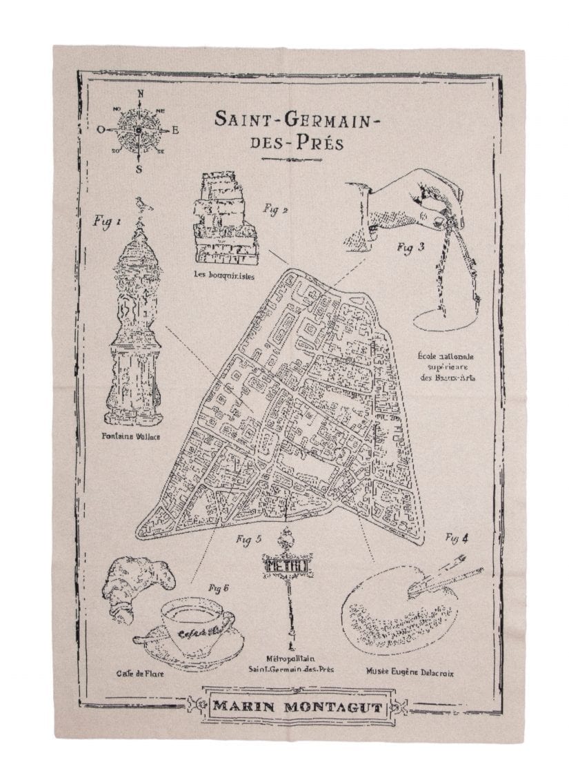 Saved NY et Marin Montagut ont créé une collection de cachemire pour la maison faite à la main et illustrée du Paris et de l’univers céleste de l’artiste. On adore le plaid Saint-Germain-des-Près. marinmontagut.com