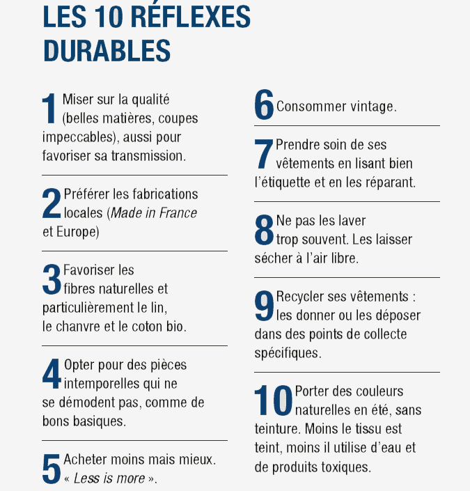 Des maisons fières de leurs produits et des conditions dans lesquelles ils ont été conçus. Les exemples ne manquent pas. Surtout, il s’agit de marques tendance, proposant un vrai style loin de l’image écolo tricotée par quelques hippies du Larzac. On a parlé de Maison Standards et d’éclectic plus haut. On connaît depuis presque 15 ans Véja et ses baskets équitables et depuis peu végan pour certaines. C’est aussi le cas de la griffe sans logo Officine Générale et de sa mode néoclassique très qualitative mais à prix raisonnés. Plus de denims japonais (trop loin), fini.