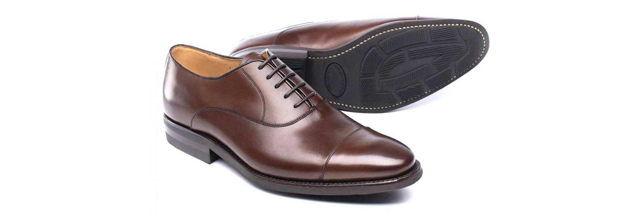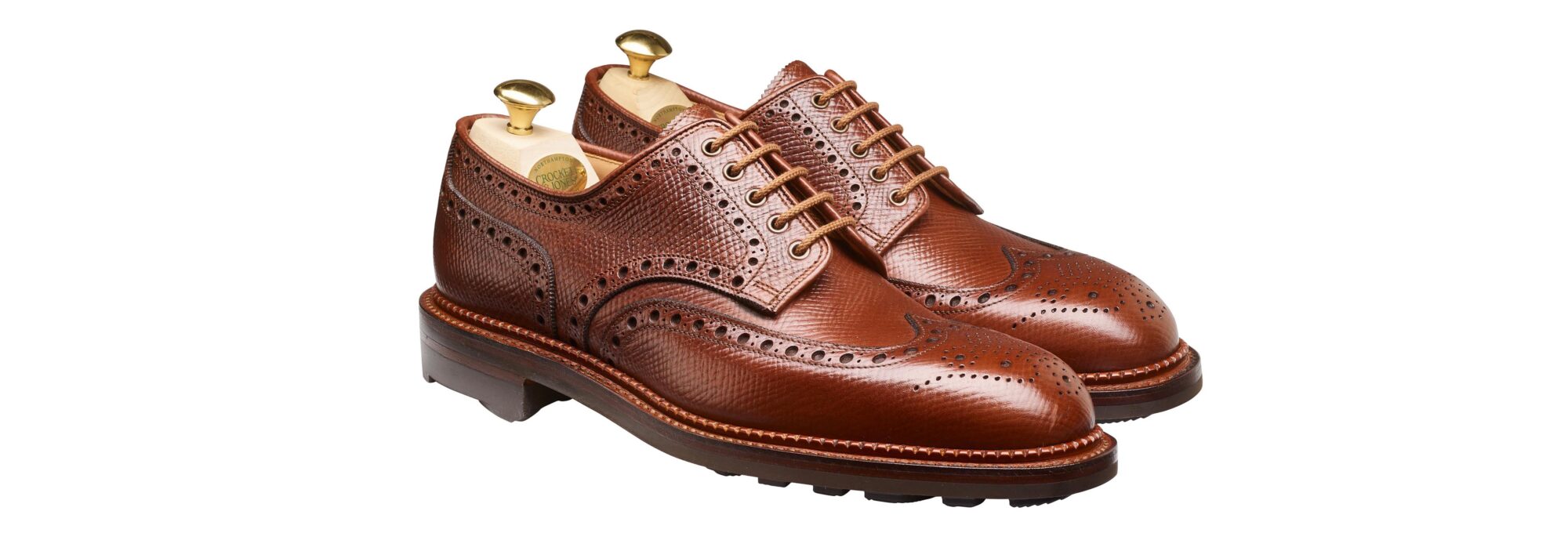 Cardigan 5, brogue, cuir Walnut Hatch Grain, cousu Stormwelt, semelles gomme Ridgeway, 680 €.