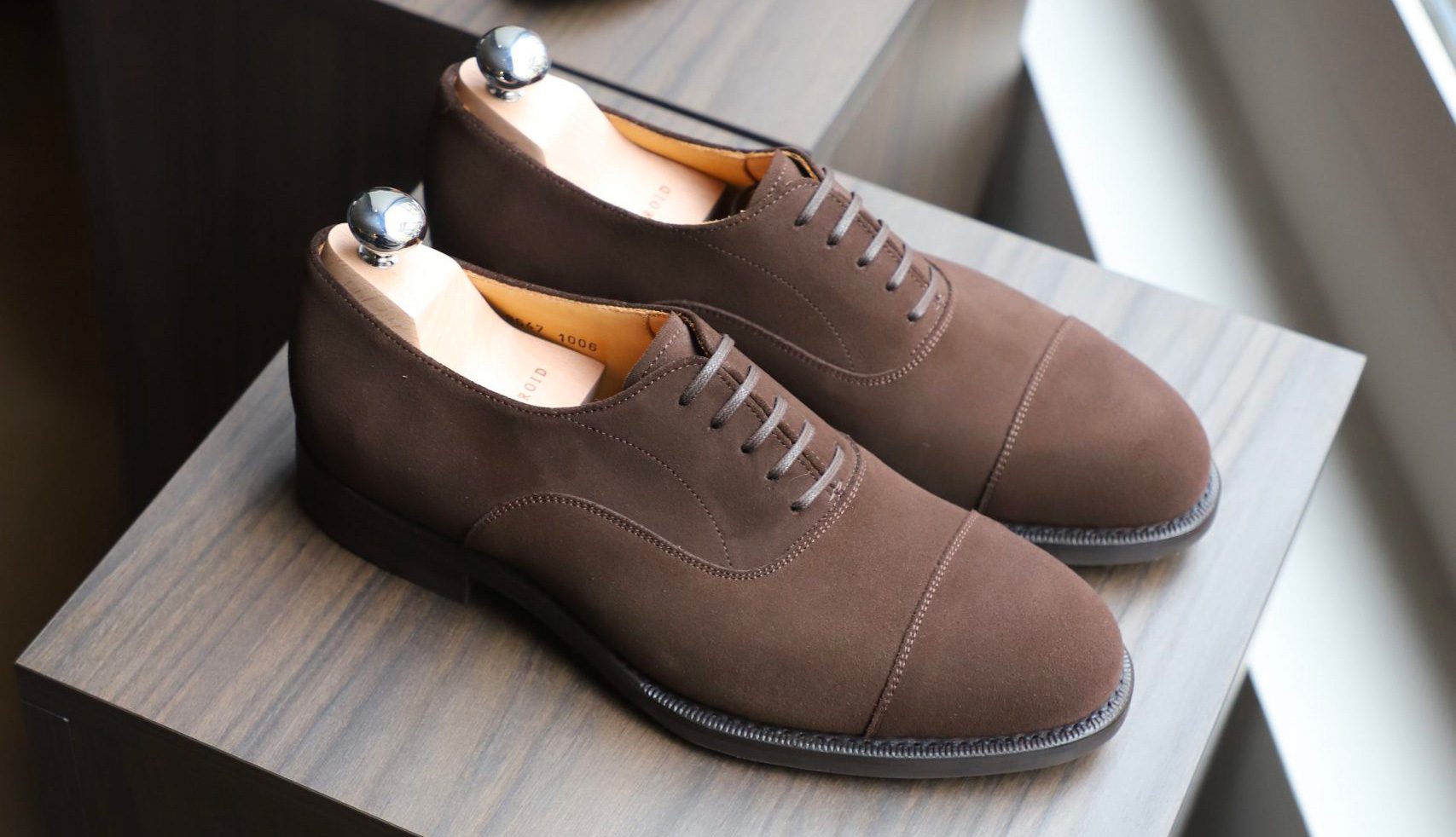 Lannistair Cooper, richelieu, veau velours des tanneries Stead, cousu Goodyear, semelles gomme Dainite, 375 €.