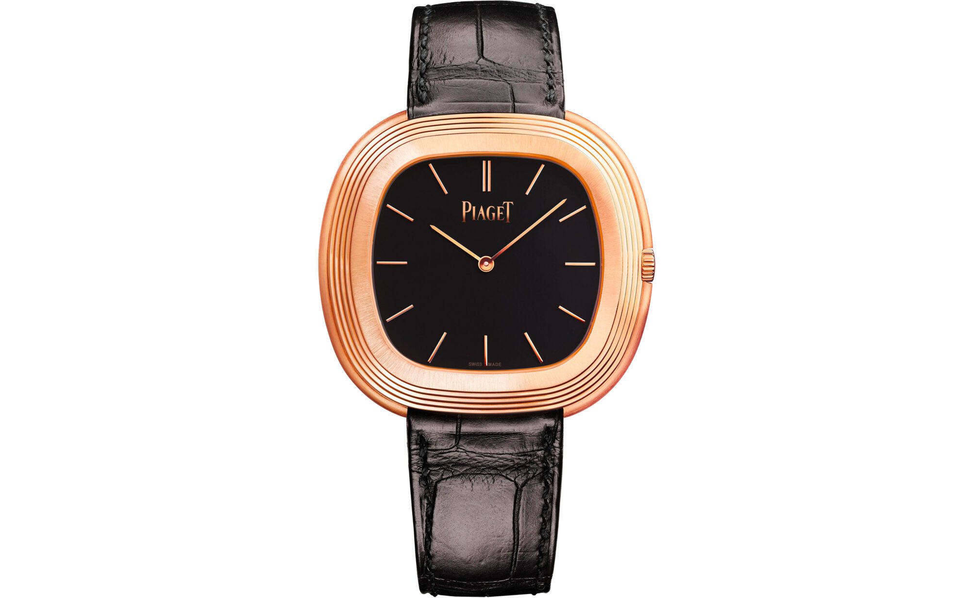 9- Montre Andy Warhol, boîtier en or rose de 45 x 43 mm, index et aiguilles en or rose, mouvement manufacture automatique (calibre 534P), bracelet en alligator, 48 000 €, Piaget.