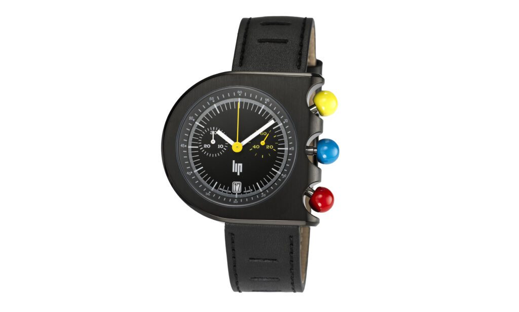 Réédition du chronographe Mach 2000 originel, créé en 1975 par Roger Tallon. Elle se distingue par son boîtier asymétrique en forme de demi-lune et ses 3 boutons ludiques et colorés, LIP.